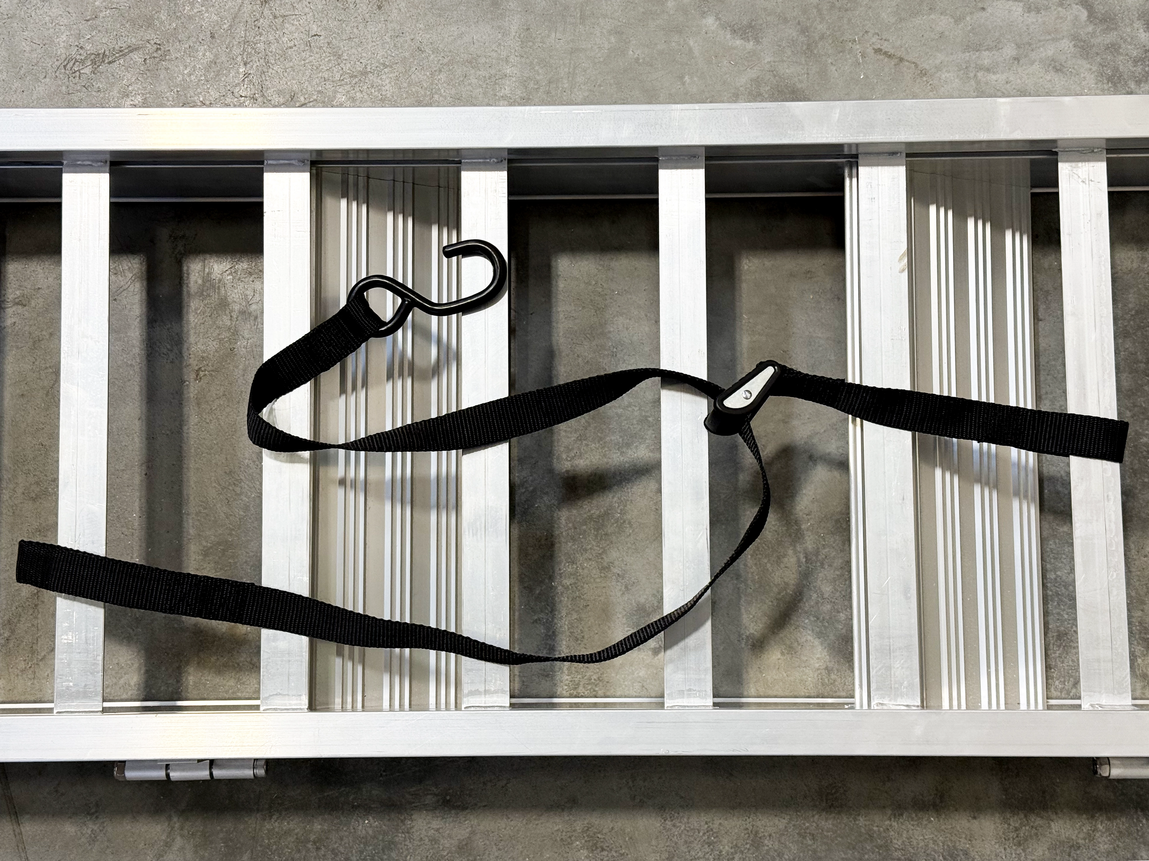 Safely secure the ramp to your vehicle with the included tie-down strap.