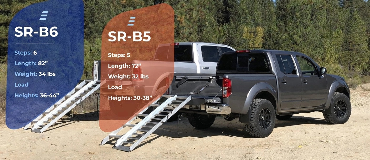 There are a variety of factors to consider when purchasing a loading ramp, but the most critical is the height of the truck bed that you will be using to transport your motorbikes, and how that effects the angle that the ramp will be at during use. We’ve made a handy angle estimator below to help you get an idea of how that will look on your truck. Once you’ve measured the height of your truck’s bed enter it into the estimator below.